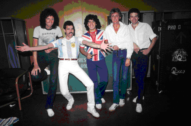 El grupo británico visitó la Argentina en plena dictadura militar, generando situaciones bizarras con autoridades políticas (un incómodo encuentro con el dictador Roberto Viola, interesado en cierta apertura cultural), un impensado cruce entre fútbol y el rock -inusual en el sur del planeta, pero normal para un británico- con la subida al escenario de Diego Maradona, así como una antológica escapada de los fans desde el hotel Sheraton en un camión policial que usualmente transporta detenidos. El antológico comentario de Mercury fue: “Amo esto, parecemos putas llevadas a la cárcel después de ser levantadas por la policía”.