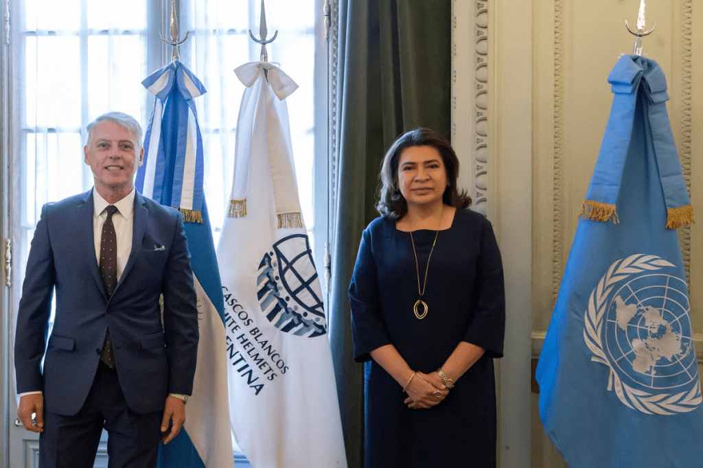 El Presidente de Cascos Blancos, Embajador Eduardo Porretti, recibió a la Coordinadora Residente del Sistema de las Naciones Unidas, Claudia Mojica. En el encuentro se analizaron las agendas conjuntas y se evaluaron futuras acciones en el terreno y en el ámbito multilateral.